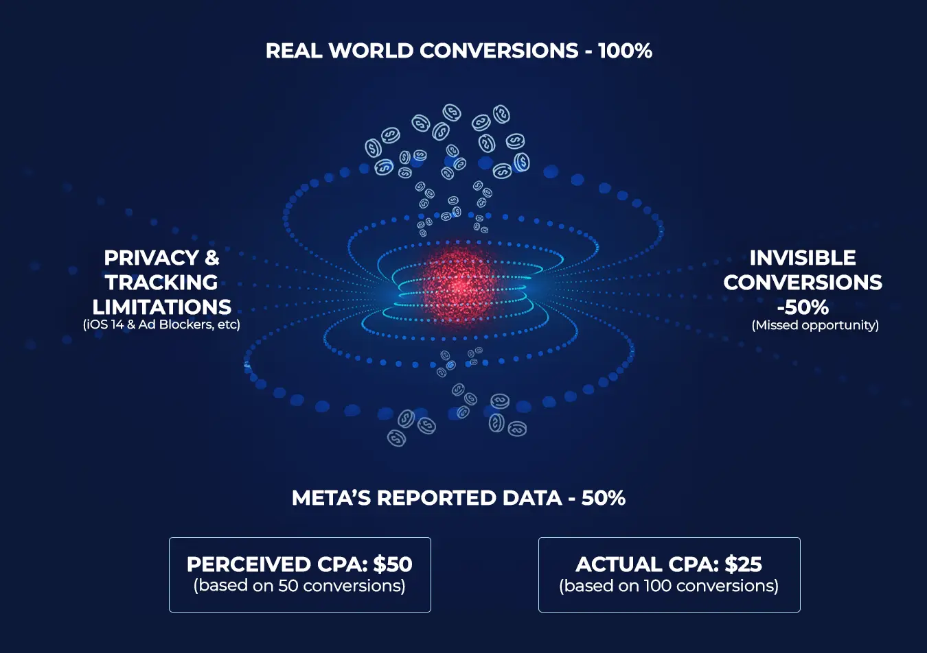 The data landscape for digital advertising has dramatically shifted in recent years. Privacy laws and tracking restrictions have cut off many of the signals that Meta’s ad targeting and attribution relied on. For advertisers, this data loss means less precision, and when you can’t precisely target or measure, you often end up paying more to reach the right customers.