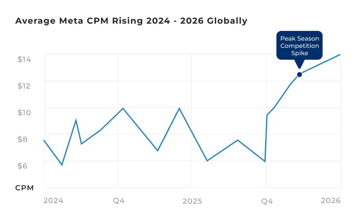 Meta’s advertising costs are increasing as we enter 2026, and direct-to-consumer (DTC) brands, performance marketers, and performance media buyers are feeling the burden. If you’ve been scaling Facebook and Instagram ads internally, you’ve likely noticed a steady uptick in CPMs and CPA over the past few years. In fact, recent data shows Facebook’s average cost per lead climbed 21% year-over-year (YoY) in 2025, and Meta itself reported a 14% jump in ad costs against only a 6% increase in impressions.